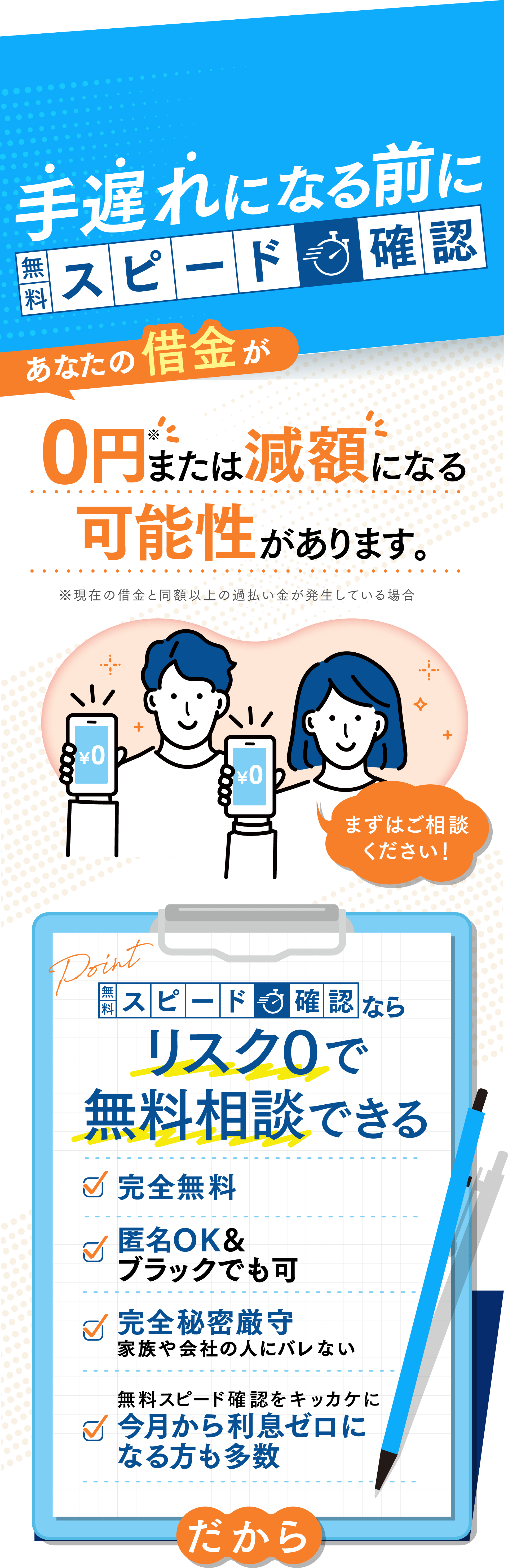 ※当サービスは、携帯電話番号を入力していただくだけで、お電話、もしくはSMSにて過払い金の無料確認をさせていただくサービスです。